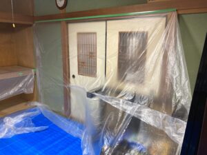 解体するのに、まず養生していきます。