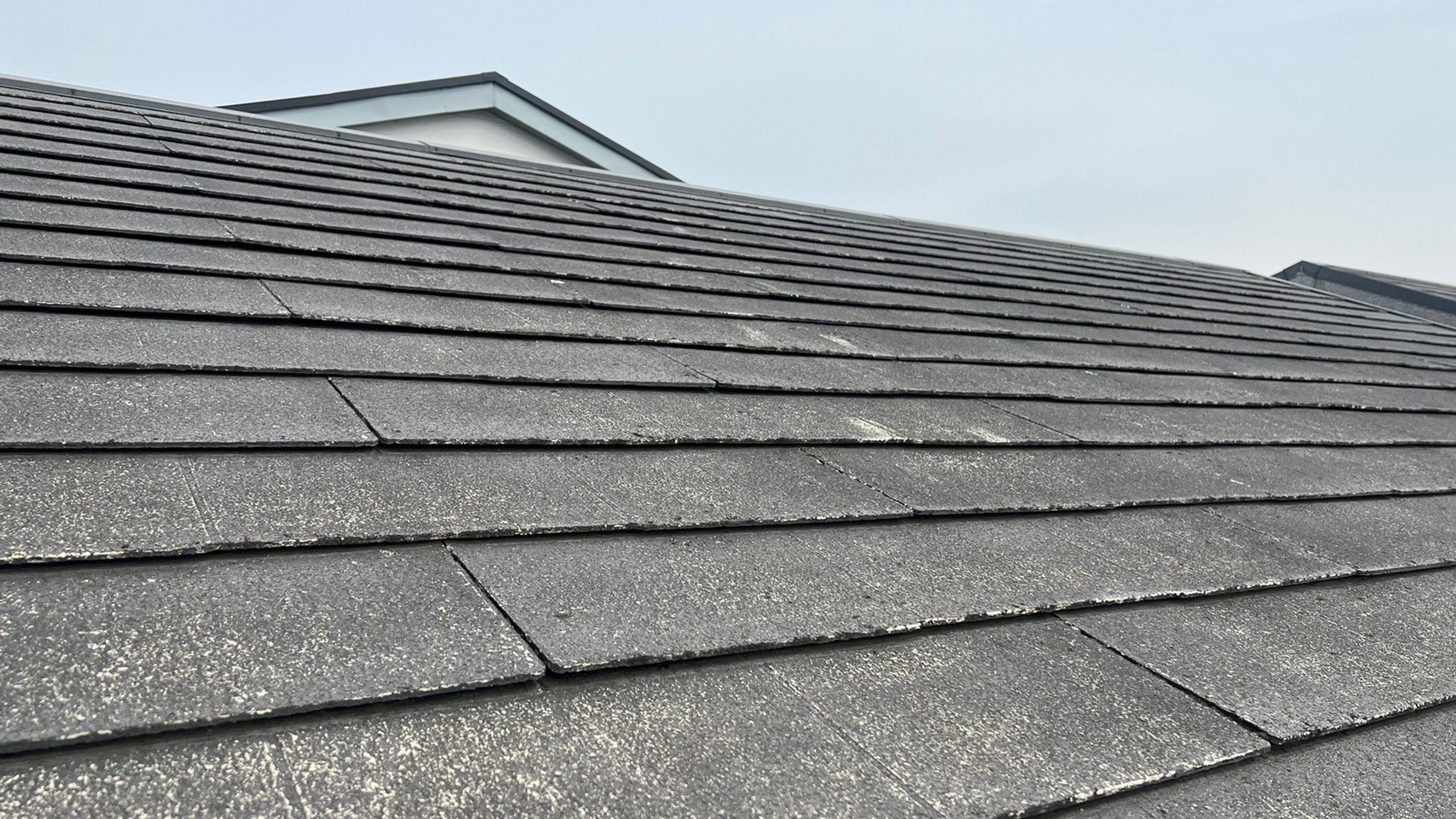 点検時、屋根に欠損部が乗っかってる状態でした。欠損部も少なからずあり、クラック(ひび割れ)もたくさんありました。